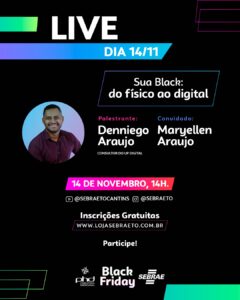 Essa iniciativa reforça o compromisso do Sebrae Tocantins em capacitar e orientar os empresários, proporcionando as ferramentas necessárias para maximizar as oportunidades oferecidas pela Black Friday e impulsionar seus negócios para o sucesso. Para obter mais informações, acesse a Loja Sebrae https://encurtador.com.br/pJP47, conforme destaca a gerente ao finalizar.