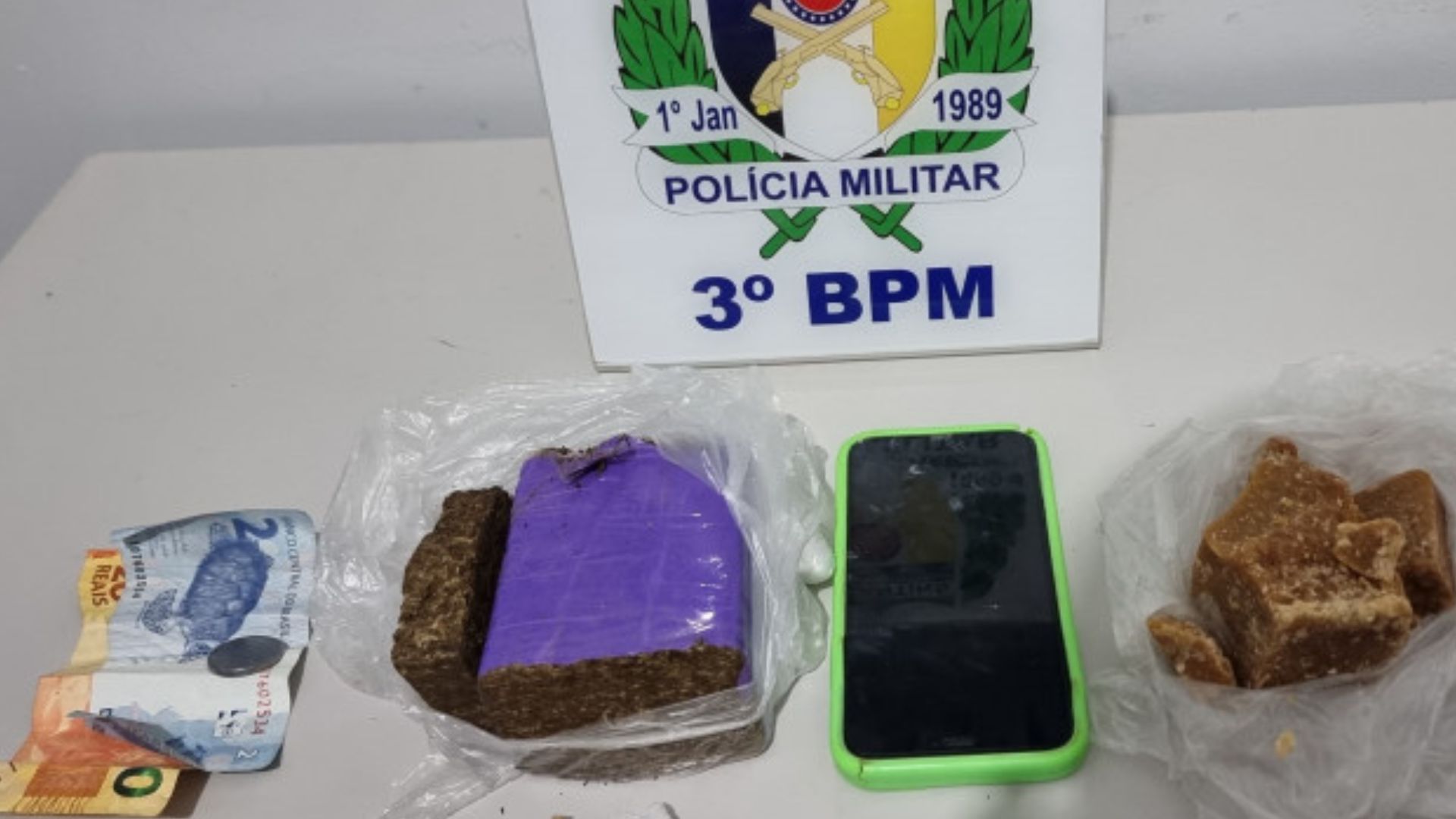 Durante a abordagem, a equipe policial encontrou cerca de 400 gramas de um material semelhante à maconha. A droga estava dividida em dois pacotes, 204 gramas estavam escondidas em uma mochila entre roupas no chão. Além das drogas, foram apreendidos um canivete, R$ 22,50 em dinheiro e um celular.