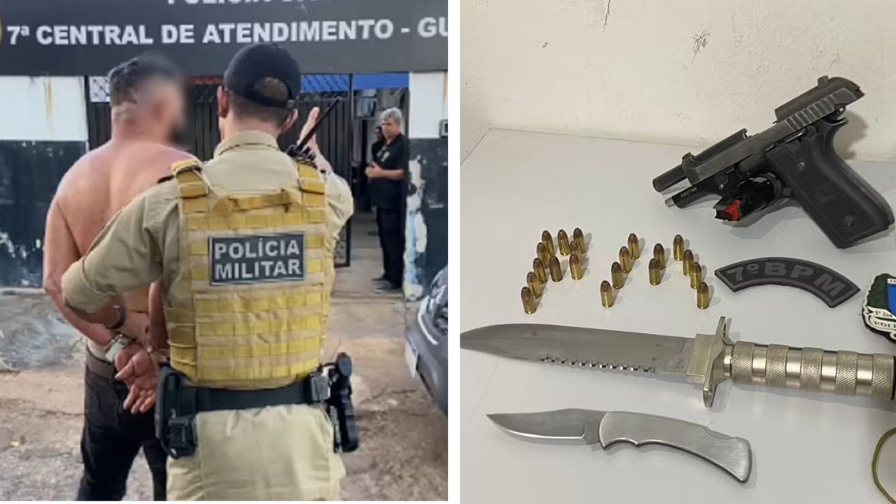 Com o suspeito, foram apreendidas uma pistola calibre 380 com 20 munições e duas armas brancas. Ele deverá responder por tentativa de feminicídio, ameaça e agressão física, de acordo com as autoridades.