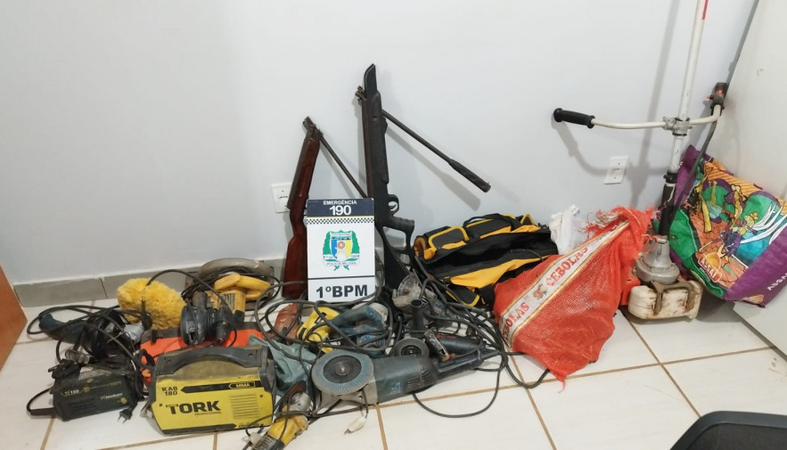 Os policiais conseguiram recuperar as ferramentas roubadas, além de apreender duas armas de fogo, uma delas sendo uma carabina de pressão e a outra uma carabina que tinha sido adulterada para utilizar munição calibre 22.