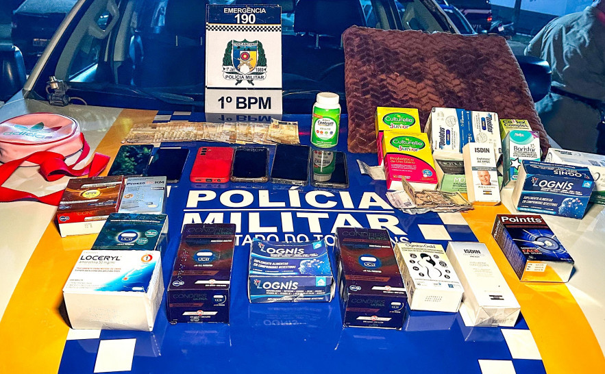 Com base nas informações, os policiais foram até o local onde os outros três integrantes do grupo estavam hospedados. No imóvel, foram encontrados diversos produtos farmacêuticos de alto valor, totalizando mais de R$ 20 mil em mercadorias furtadas.