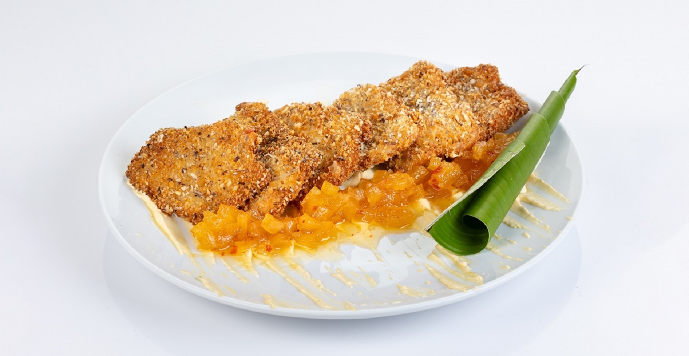 - Restaurante Mandala – Prato: Pirarucu Bela Vista (Pirarucu empanado na farinha panko e babaçu, servido com creme de cajá e geleia de abacaxi)
