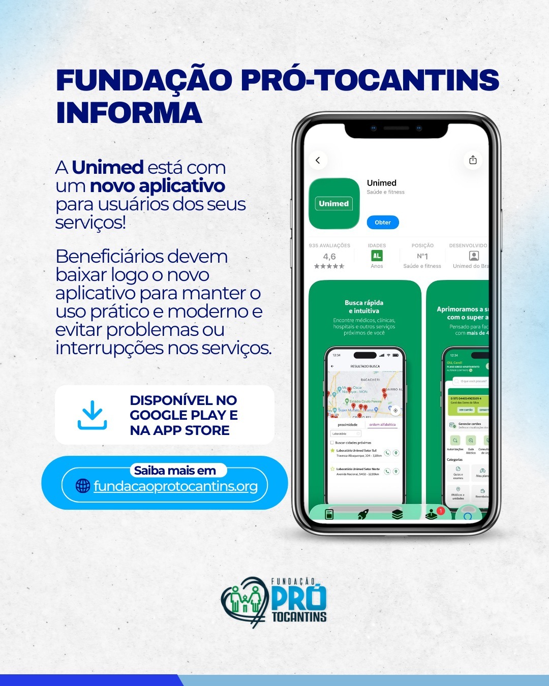 A Fundação Pró-Tocantins informou que os beneficiários do FA-Saúde atendidos pelas Unimeds de Palmas, Gurupi e Araguaína vão passar a usar um único aplicativo para acessar os serviços do plano. A mudança unifica as plataformas digitais e vai substituir os aplicativos atuais, que serão desativados nos próximos meses.