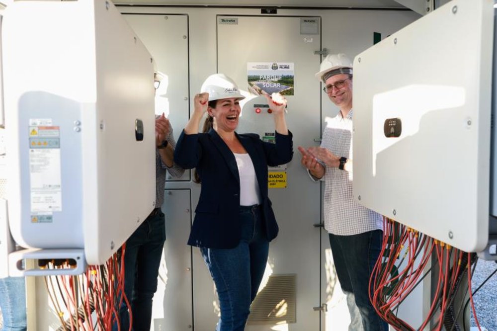urante a cerimônia, a prefeita destacou o impacto da iniciativa. “A capital mais jovem do Brasil se torna a primeira totalmente sustentável em energia elétrica, com todos os prédios públicos municipais atendidos, com a produção do Parque Solar. Isso é sustentabilidade na prática, será um exemplo na COP 30, que será no Brasil em 2025, e cumprindo os Objetivos de Desenvolvimento Sustentável (ODS) da Agenda 2030”.